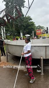 The footage, which shows her surrounded by helpers and spectators, is part of her preparations for a record-breaking attempt to cook the world’s largest pot of jollof rice.