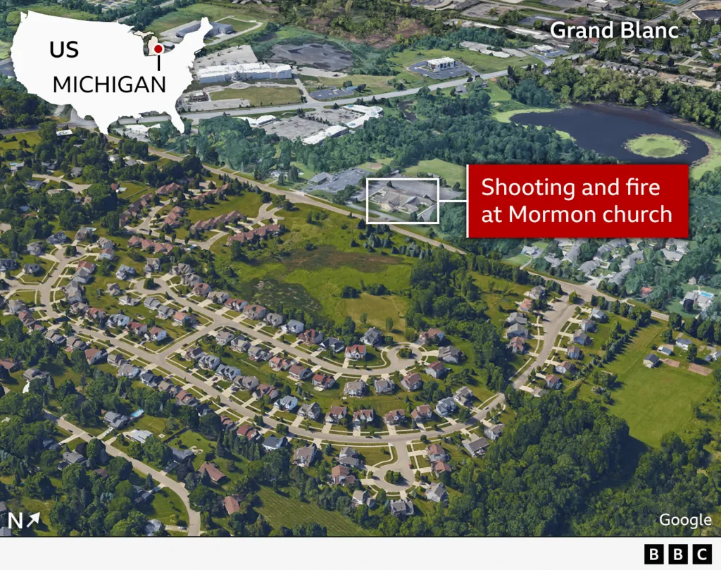 Officials said the attack on the Church of Jesus Christ of Latter-day Saints in Grand Blanc, a town 60 miles (100km) northwest of Detroit, happened during a Sunday service attended by hundreds of people.