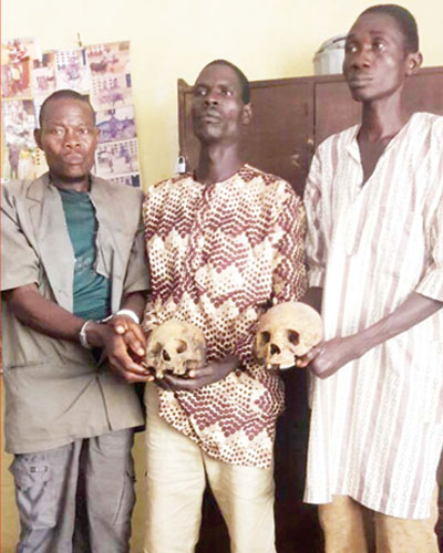 The Police Command in Ogun says it has arrested Kadir Owolabi, a motorcycle rider, who was allegedly in possession of three human skulls.